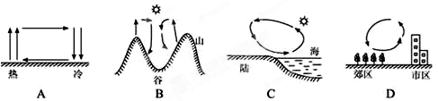 5、单选题 在“四幅热力环流示意图”中,不能正确表示热力环流的是