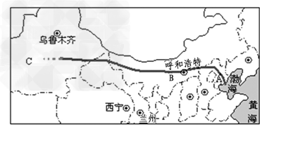 5、单选题 “陆海统筹海水西调高峰论坛”于2010年11月5日在乌鲁木齐市召开,在全国引起广泛热议。“海水西调,引渤入新”,引渤入新:从渤海西北海岸提送海水达到海拔1200米高度,到内蒙古自治区东南部,再顺北纬42°线东西方向的洼槽地表,流经燕山、阴山以北,出狼山向西进入居延海,绕过马鬃山余脉进入新疆。下图为海水西调入疆构思图,据此回答3题。