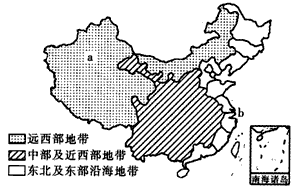 3、单选题 读我国东北及东部沿海地带、中部及近西部地带、远西部地带划分方案图,回答1—2题。
