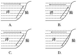 小题2:秘鲁寒流成因为东南信风(此地为离岸风)影响,表层海水在风的影响下由东流向西,而低层海水上泛进行补充。故选B。