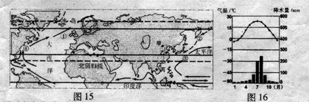 (3)图16表示甲、乙、丙、丁四地中,????????地的气温和降水特点。