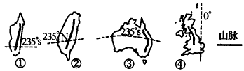 2、单选题 读世界某些岛屿或大陆轮廓分布图,判断1—3题。