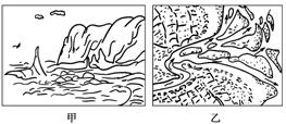 (3)如果这两种类型的海岸发育在热带海域,那么有可能发育成珊瑚礁海岸的是________。(填甲或乙)