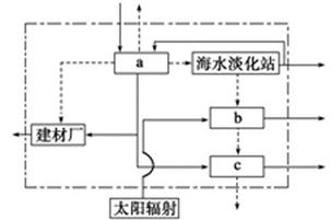 图示意某雏形生态工业园区的产业链,箭头表示物质、能量流动过程,其中虚线箭头表示副产品或废弃物的流动。完成(5)-(7)题。