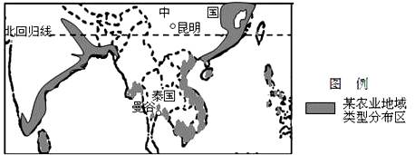 A.甲地热量不足成为农业生产的制约因素 B.乙地适宜发展现代旱作谷物农业 C.丙地降水变率大,农作物易受旱涝灾害的影响 D.丁地雨热同期利于甜菜等糖料作物的生产 2、单选题 近三年来,我国云南省持续发生旱灾。2011年泰国发生了严重的洪涝灾害。下图为“部分地区主要农业地域类型分布示意图”。据此完成下列各题。 |
