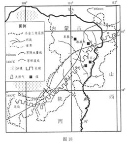 3、综合题 (12分)图18是我国某区域图。该地区被称为“乌金三角”,位于三省区的交接地带,自然环境具有明显的过渡性特点。读图回答问题。