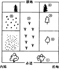 1、综合题 读“自然景观地域分异示意图”,回答下列问题。