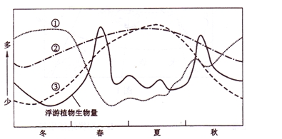 1.表示光照、营养物质含量、气温年变化的曲线依次是2.若营养物质供应充足,则该湖泊浮游植物大量繁殖大约会持续