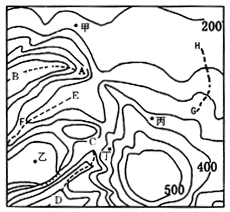 本题解析:试题分析:小题1:长城主要建于山脊地带,故A—B段等高线“凸低为高”为山脊。C-D段“凸高为低”为山谷;E-F段“凸高为低”为山谷;G-H段等高线分布较稀疏,为缓坡。