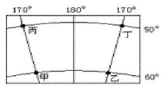 1、单选题 根据下图中甲、乙、丙、丁四地的经纬度位置,判断第7题。