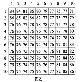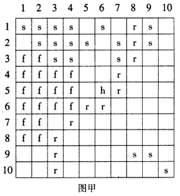 3、综合题 图甲为一幅我国山东省某区域的地理信息空间数据图,每个小方格表示实际长宽各10米,图中r表示河流,s表示林木,h 表示住房,f表示耕地;图乙数据表示图甲相应区域内各方格的平均海拔(单位:米),回答下列问题。