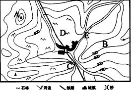 (2)在D、E、C、B三处中最适于修筑水坝的是?????????。