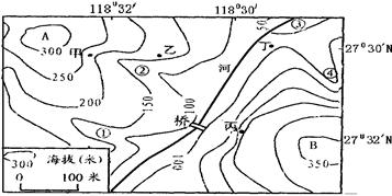 3、单选题 读某区域等高线图.回答问题。1.四地中受地形影响、年降水量最多的是2.桥面相对于桥底的高度是3.若在桥下发现水质污染,则污染源最有可能是来自4.从图中信息分析,下列说法正确的是