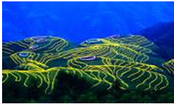 4、单选题 下图是用灯光勾勒出的广西龙脊梯田夜景图,图中灯光主要是沿着( )