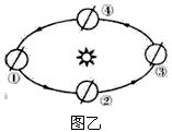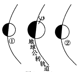 (1)分别在①、②两大行星公转轨道上标出其公转方向。
