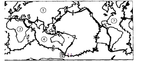 ①南极洲板块②美洲板块 ③太平洋板块 ④ 印度洋板块