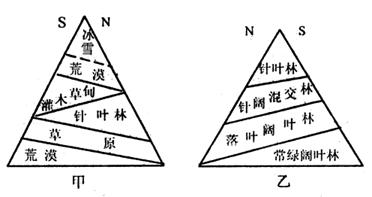 5、单选题 下图为甲、乙两地垂直自然带分布图,读图回答问题。