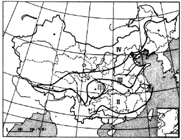 2、单选题 读“我国大陆性气候和海洋性气候”分布图,图中Ⅰ为海洋性气候区,Ⅱ为海洋性过渡气候区,Ⅲ为大陆性过渡气候区,Ⅳ为大陆性气候区。回答下列小题。