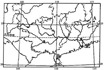 (2)简述6月10日至8月10日考察期间,B地(21°N)昼长的变化情况。(3分)