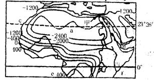 5、单选题 读所给世界某地区水平衡(年降水量减蒸发量)分布图,回答问题问题