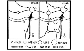 (1)1950年至2000年,该地区城市发展变化的特征有______________________(至少两点)。一般来说,城市化水平不断提高的重要标志是_____________________。