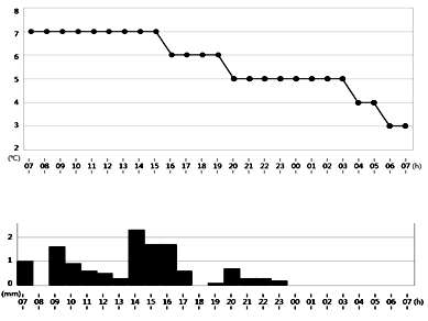 3、单选题 下图为“株洲市2014年12月3日7时至4日7时气温和降水统计图”,读图回答下列各题。