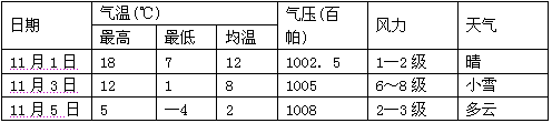 (4)根据材料二判断天气系统①为?????锋,判断根据是????????。(2分)
