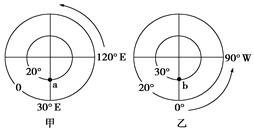 4、单选题 读某区域图,某日一架飞机日出时从乙地起飞,朝正东沿纬线飞行,一路阳光普照,经过4小时到达甲地时,正好看到日落。回答题。