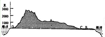 ①石油资源丰富 ②人口稠密 ③土地盐碱化 ④农业以畜牧业为主 ⑤轻重工业均发达 A.①③④ B.①④⑤ C.②③⑤ D.②④⑤ 5、单选题 读欧洲某地剖面地形图,B为柏林市,D为威尼斯市。回答24—25题: |