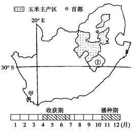小题1:由纬度可知,玉米主产区主要分布在南半球的亚热带,7~10月南半球为冬春季节,气温较低、降水较少,但不能说寒冷,更不能说炎热、降水过多,排除B、C、D选项。