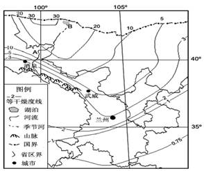 (1)描述图示地区干燥度分布规律,并简析其成因。(8分)