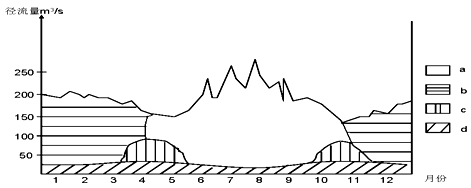 2、单选题 读某河流相对流量过程曲线示意图(该河以雨水补给为主),回答下面两题。
