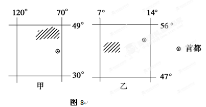 5、单选题 图10为甲、乙两国轮廓图,读图回答问题。