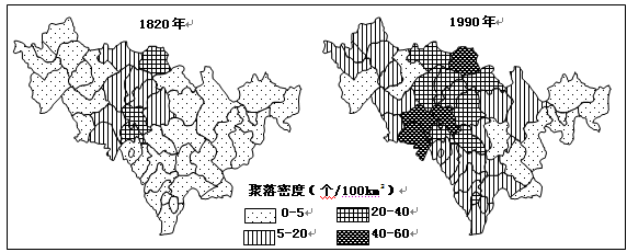 小题2:从1820年到1990年吉林省的聚落密度有显著变化,其主要影响因素有