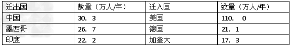 5、单选题 下表资料摘自联合国于2000年发布的预测报告,反映了2001—2050年世界移民趋势。据此完成1、2题。