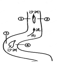 本题解析:因河流的主航道位于河流的水深处,所以在河流的弯曲处,凹岸因受河水的冲刷水深处在③处,受地转偏向力的影响,河流的②处水深。故选C。