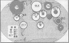 2、单选题 ?读图世界各地区粮食进口状况示意图。图中圆的大小表示数量的多少,回答1-2题。
