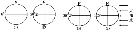 A、A B、B C、C D、D 3、单选题 据报道,某年3月9 日,我国科考队员在中国北极黄河站(78°55"N,11°56"E)观看了极夜后的首次日出。完成1~3题。 [? ] A、10时 B、13时 C、16时 D、19时 2、当日,日落于黄河站的 [? ] A、东方 B、西方 C、南方 D、北方 3、据此推算,黄河站此次极夜开始的时间约在前一年的 [? ] A、9月21~30日 B、10月1~10日 C、10月11~20日 D、10月21-30日 4、单选题 下图四幅地球自转位置示意图,表示北京时间为上午10点整的是 5、单选题 读地球侧视图,判断1—3题。 |