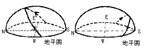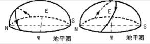 (6)此日,西安(34.27°N、108.9°E)当地看到太阳升落的视运动轨迹示意图为