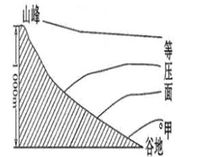 3、单选题 下图是某一时刻山峰和山谷之间冷热不均形成的一种热力环流,叫山谷风。据图12完成题。