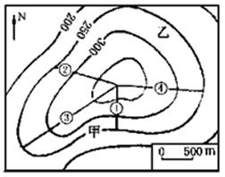 D、甲为河谷,乙为山地