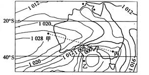 4、单选题 下图为某地某时刻海平面等压线(单位:百帕)分布图。读图,完成下列问题。