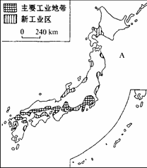 (1)从图上看,日本工业主要分布在________沿岸和________沿岸的狭长地带。 (2)日本工业属于典型的加工贸易型,试分析产生这种现象的主要原因 (3)日本向发展中国家转移的工业主要有(?) ①技术密集型工业? ②劳动密集型工业 ③能耗高的工业? ④产品容易运输的工业 A.①② B.③④ C.②③ D.①③④
