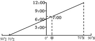 5、单选题 图4为甲地某时间段正午太阳高度的变化图,A、B数值为一年中的最大值,且A到B的时间差为三个月,甲地在C日的日出、日落时间分别为(世界标准时)3:40和16:20,甲地位置可能为: