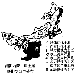 4、单选题 读“晋陕内蒙古区土地退化类型与分布”图,回答1—2题。
