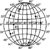 (1)A、B、C、E、F五处地球自转线速度最小的是________。