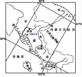 本题解析:小题1:本题考查我国西北地区。第28题,A项根据祁连山的位置,祁连山以北为内蒙古高原,以南为青藏高原,故本区主要位于内蒙古高原,错误。B项该地位于西北内陆,降水少,河流补给主要以冰川融水为主。错误。C项,根据水往低处流的原则,弱水发源于南部祁连山区,向北流入沙漠。错误。D项该地位于西北地区,气候干旱,降水少,植被少,故荒漠化严重。 小题1:第29题,①温带大陆性气候,光照强。错误。②气候干旱,缺水。错误。③本区地处干旱、半干旱地区,故自然植被为草原、荒漠。正确。④本区气候干旱,降水少,地表水少,植被少,土壤发育程度低,故生态环境恶劣。