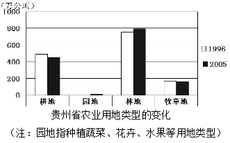 (3)分析贵州省农业发展中土地利用主要的不利因素。(4分)