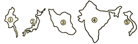 2、单选题 比较该图五个亚洲国家,完成问题: