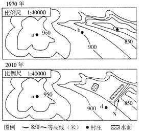 5、单选题 下图为“黄土高原上某地不同时期的等高线地形图”。20世纪70年代,b、c两村搬迁合并为d村,该村在小流域综合治理中,修建了N工程。读图完成以下问题。